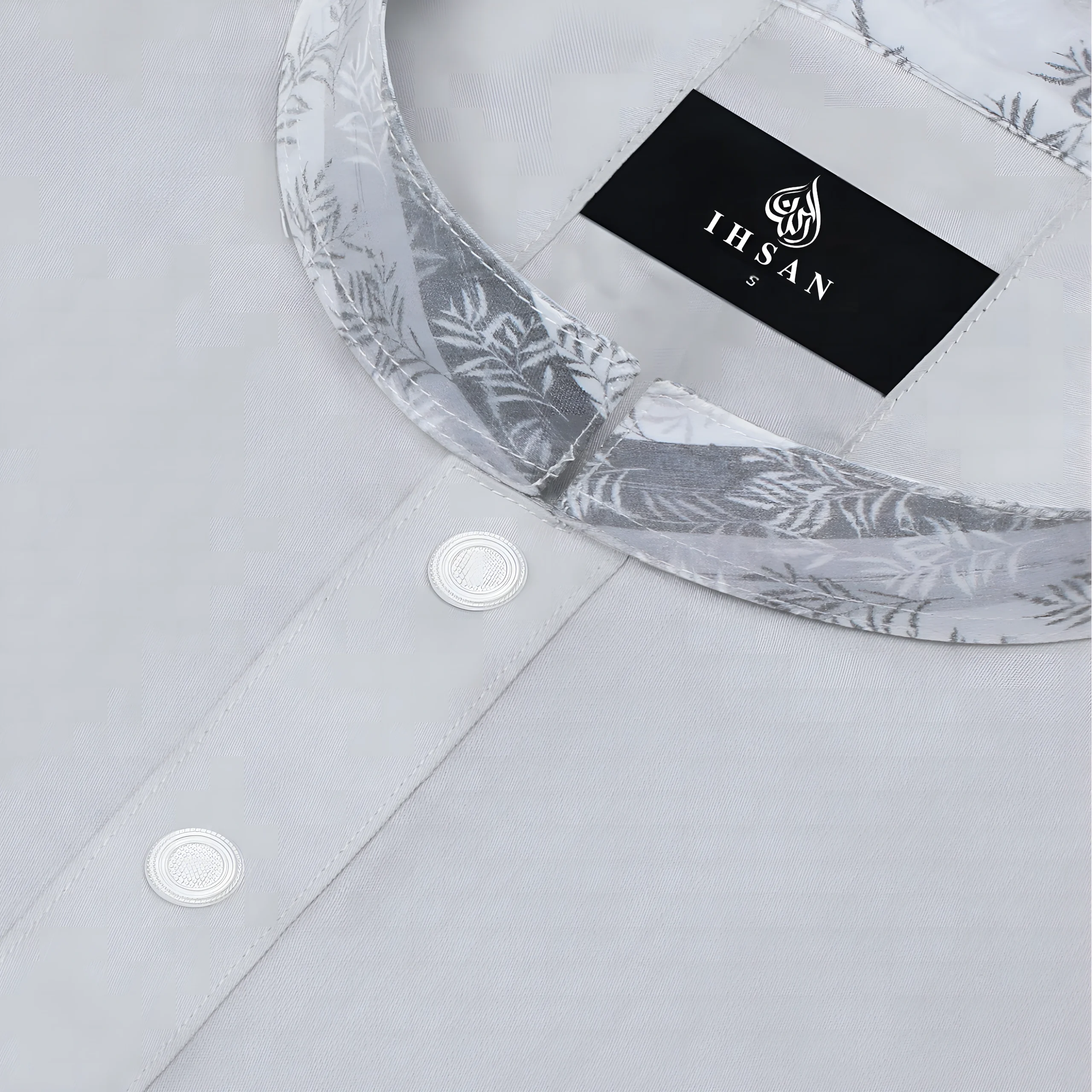 Reimagine modern elegance in a light grey tone, defined by the discreet, contrasted inner collar and cuffs. Breathable Lyocell combinesa soft and smooth feel with flawless drapes for seasonless comfort.